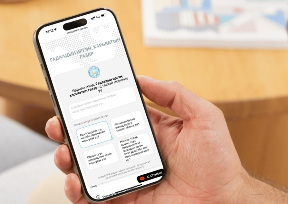 Энэ хүрээнд хиймэл оюун ухаанд суурилсан чатботыг цахим үйлчилгээний нэгдсэн (isf.mn) систем болон байгууллагын цахим сайт (immigration.gov.mn), цахим хуудаст холбож, үйл ажиллагаанд нэвтрүүллээ.